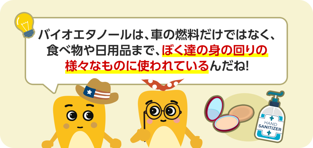 そのほか、化粧品、医薬品、消毒用アルコールなど身の回りの製品にも幅広く使われています。